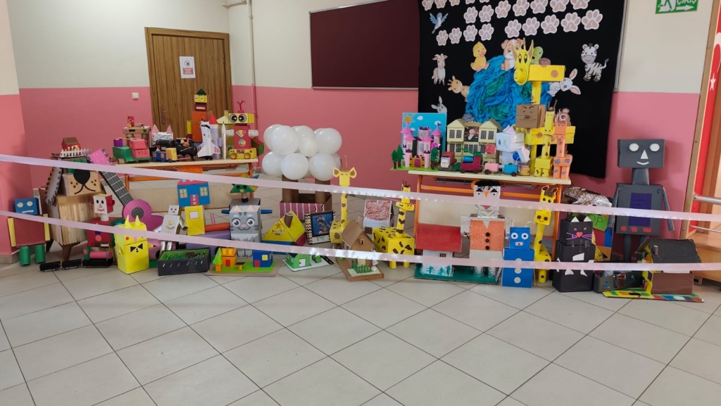Hem eğlenceli hem öğretici geçen bu etkinlikte öğrenciler, atık malzemelerin doğru kullanıldığında nasıl yeniden değerlendirilebileceğini ve geometrik şekillerin yapılarını daha iyi kavradılar.